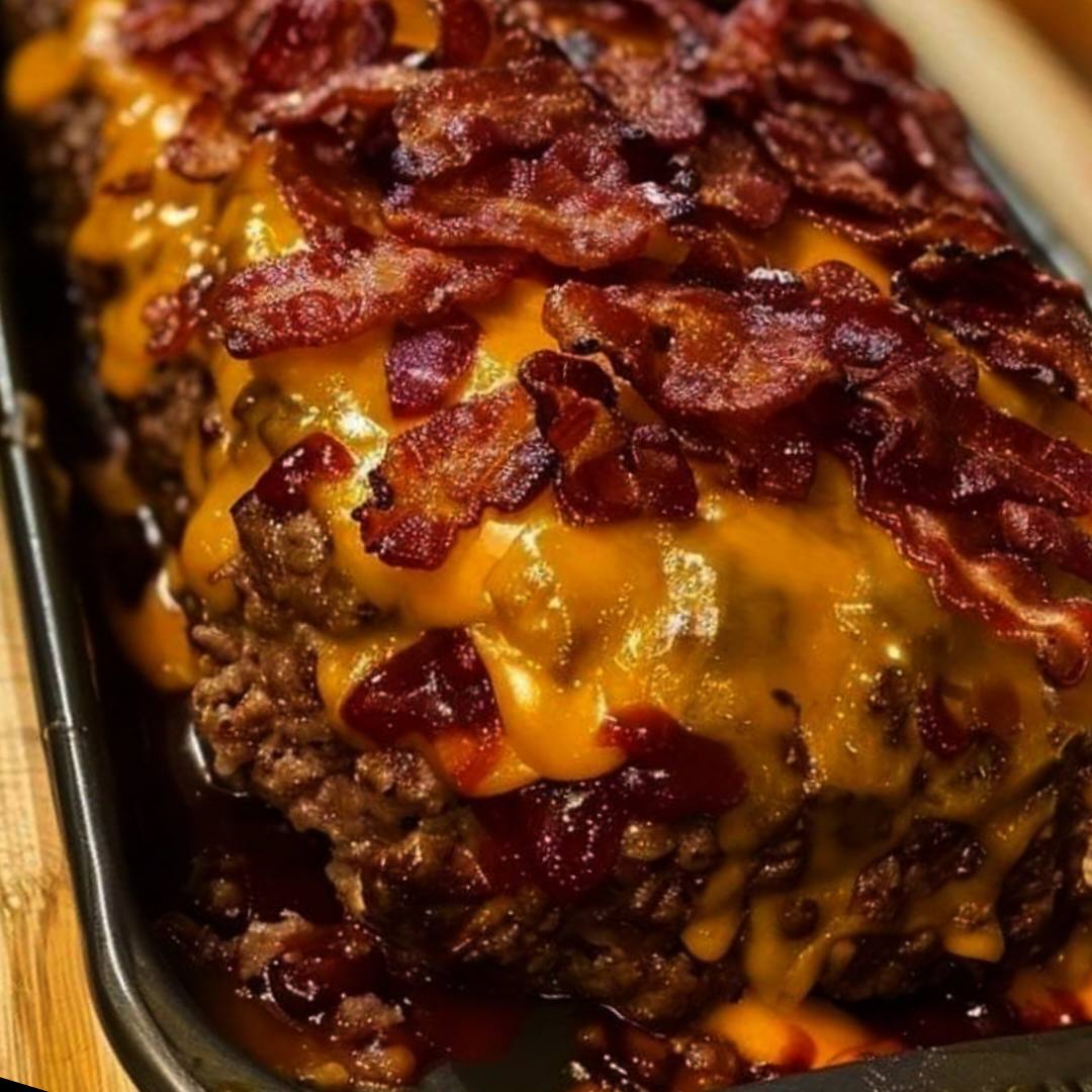 In a large mixing bowl, combine the ground beef, cooked and crumbled bacon, shredded cheddar cheese, bread crumbs, ketchup, mustard, Worcestershire sauce, chopped onion, minced garlic, beaten eggs, salt, and pepper. Mix until well combined.