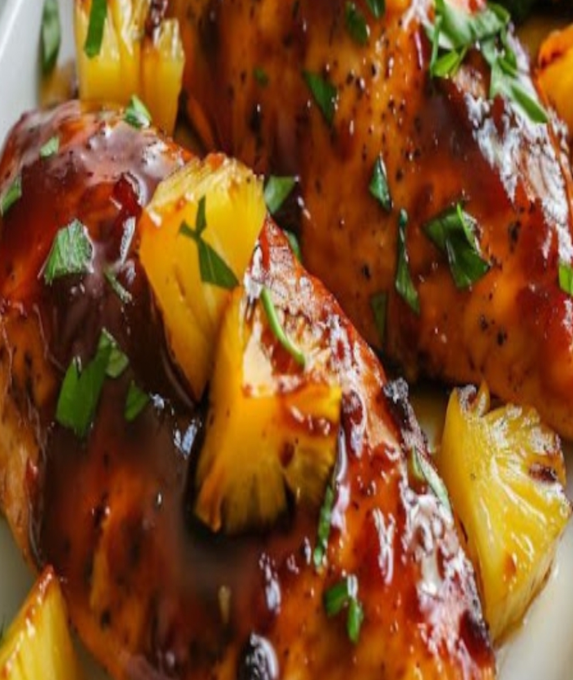 For a change of pace, use a smoky or spicy barbecue sauce instead of the original. It will give the dish a whole new dimension of taste. You may enhance the flavor and texture by using onions and bell peppers. Squeeze a lime wedge over the chicken just before serving for an extra kick. Grilling the chicken and pineapple instead of baking would be another option for those seeking a lighter version.