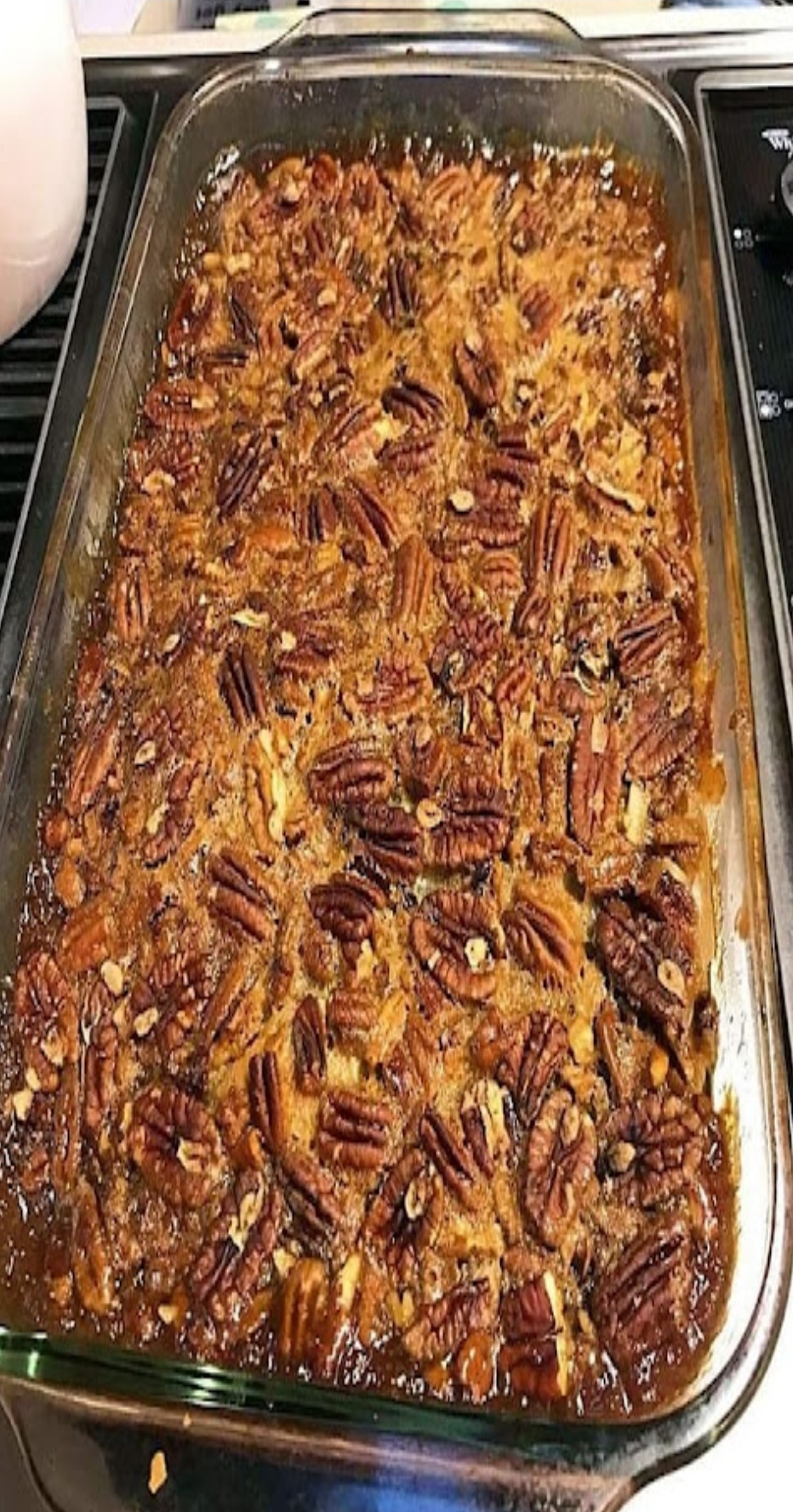 In separate bowl, whisking rest 1/2 cup sugar, corn syrup, and eggs. Stirring in pecan halve.