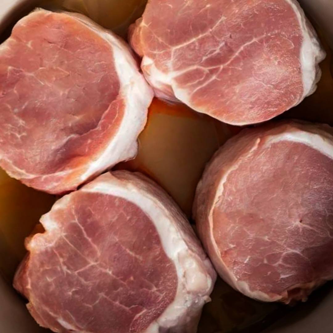 Step one in getting ready is to wash and place four pork chops in a slow cooker.