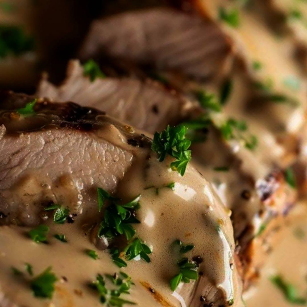 Serve: Slice the tenderloin, ladle over the creamy Dijon sauce, and garnish with parsley if desired.